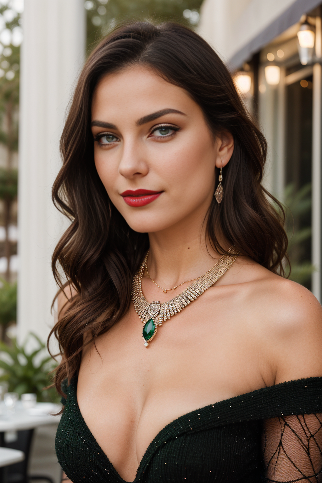 Prompt: “iso 160, 24mm, 50mm, portrait, off-the-shoulder dress and a single, by Filip Hodas”