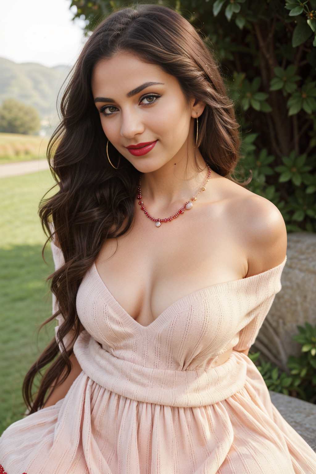 Prompt: “1/1250sec at f/2.8, 15mm, 24mm, with the background featuring a picturesque countryside setting”, flowy dress, by Steve McCurry”