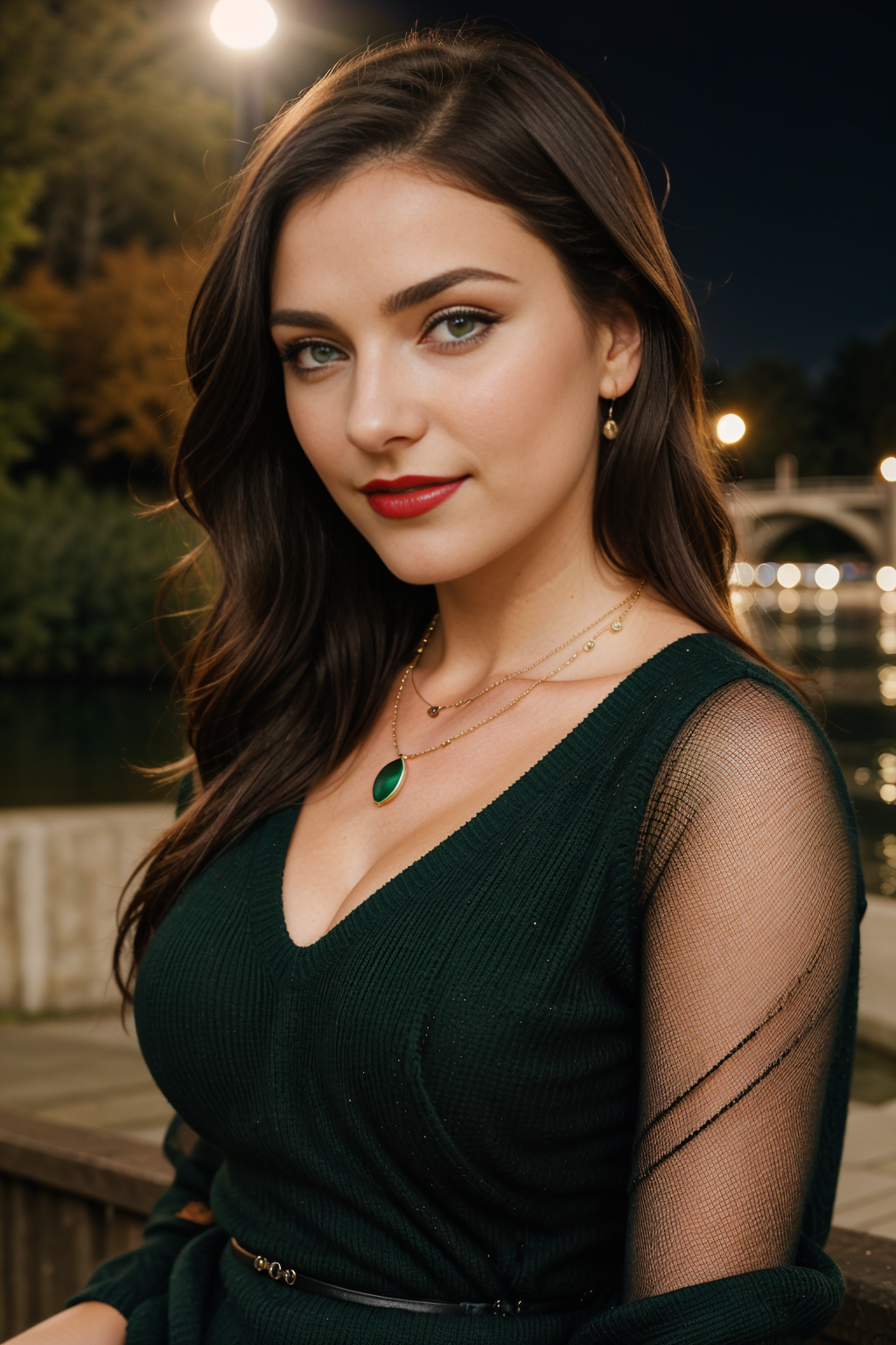 Prompt: “35 mm, 84mm, 84mm, large eyes, with the background featuring a lake and a bridge”, by caravaggiom award winning photo”