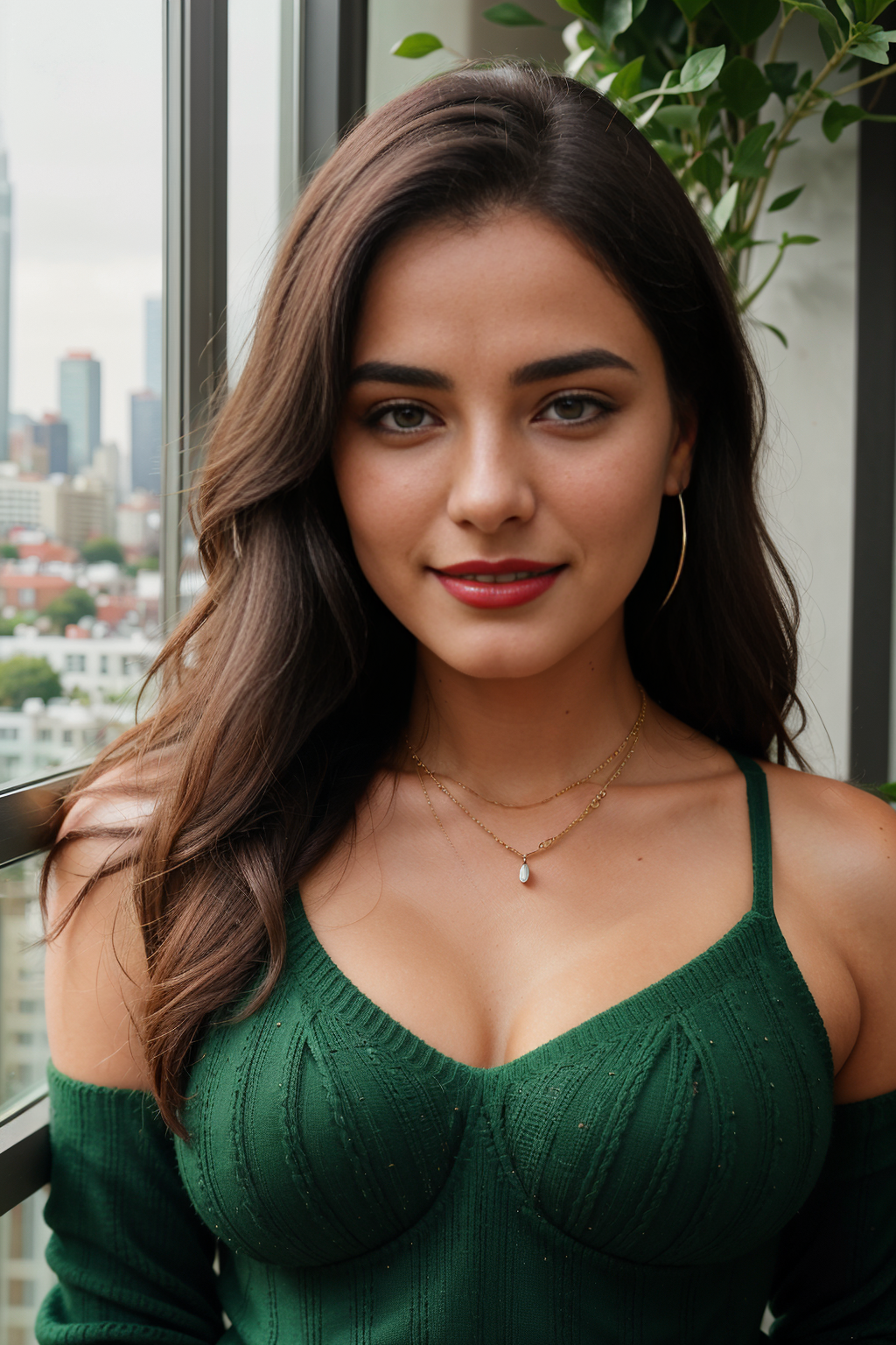 Prompt: “f/2.8, 15mm, 85mm, standing in front of a large window with a cityscape view”, warm tones”, by David LaChapelle”