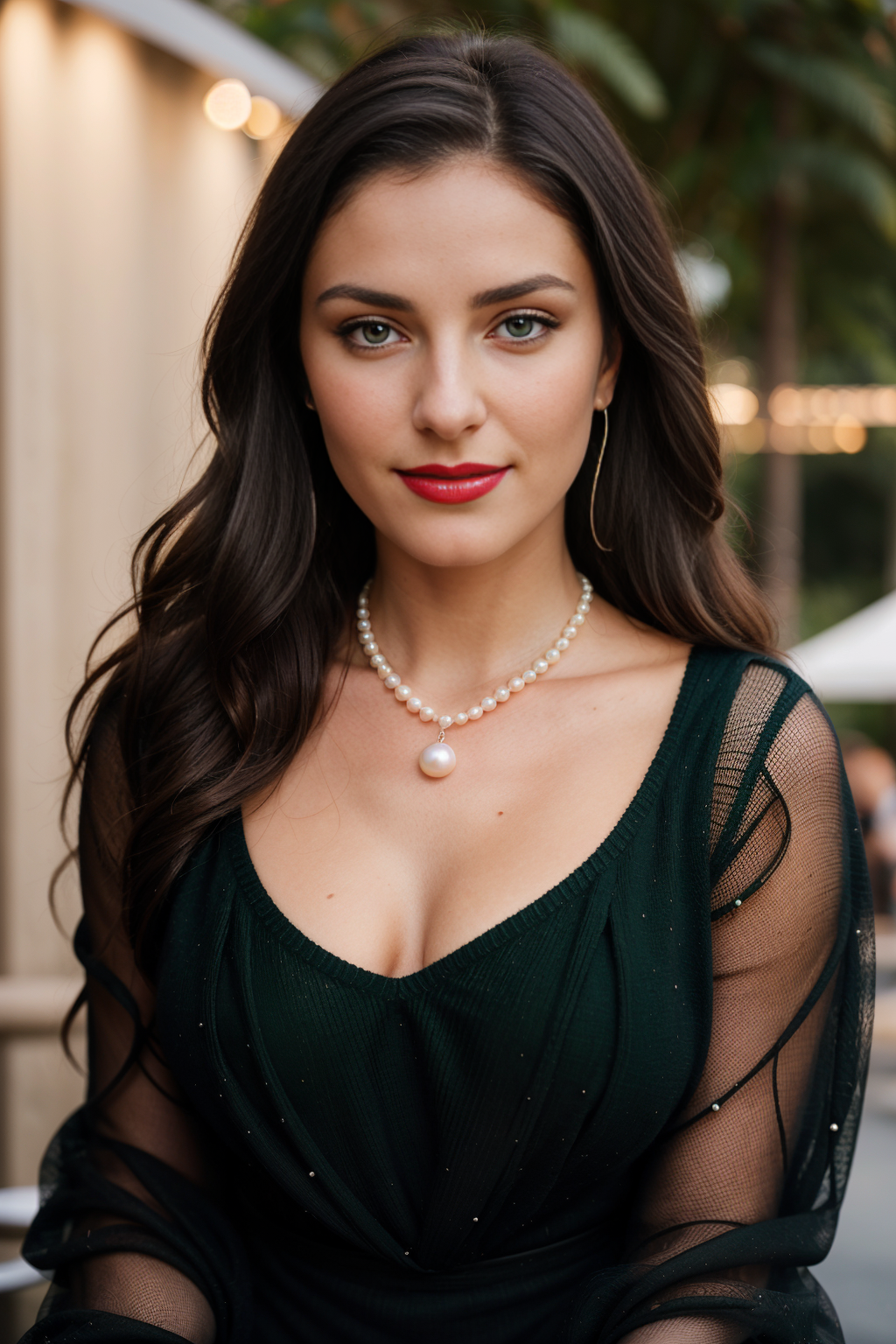 Prompt: “f1.8, 85mm, 50mm, the background should be out of focus and feature soft, “a portrait of a woman wearing a black dress and pearls, by caravaggiom award winning photo”