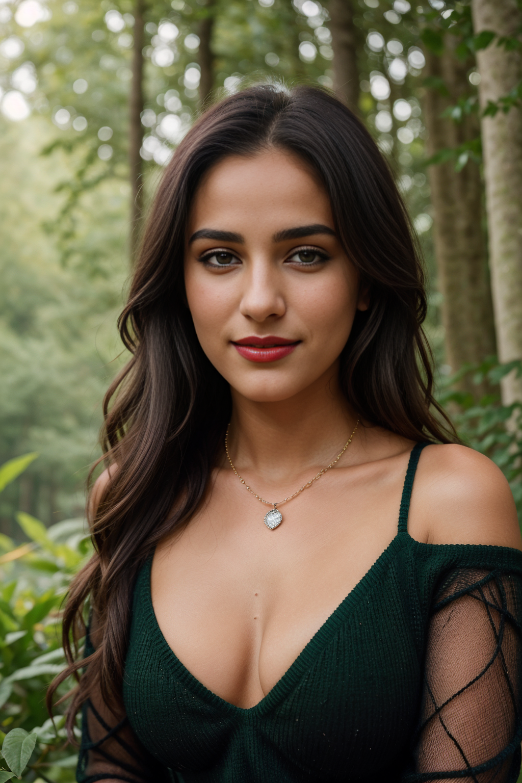 Prompt: “she is 18, 8k, 85mm, fantasy forest background, the background should be out of focus and feature a gritty, by caravaggiom award winning photo”