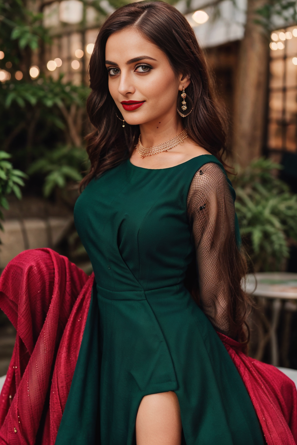 Prompt: “fujifilm x-t3, 84mm, F/2.8, “a portrait of a woman wearing a red dress, octane, by caravaggiom award winning photo”