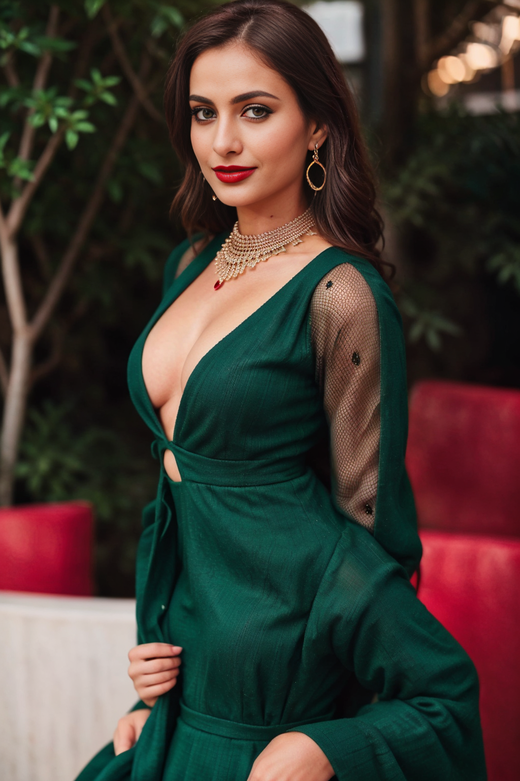Prompt: “f1.8, 15mm, F/2.8, “a close-up shot of a woman with a serious expression, elegant, by David LaChapelle”