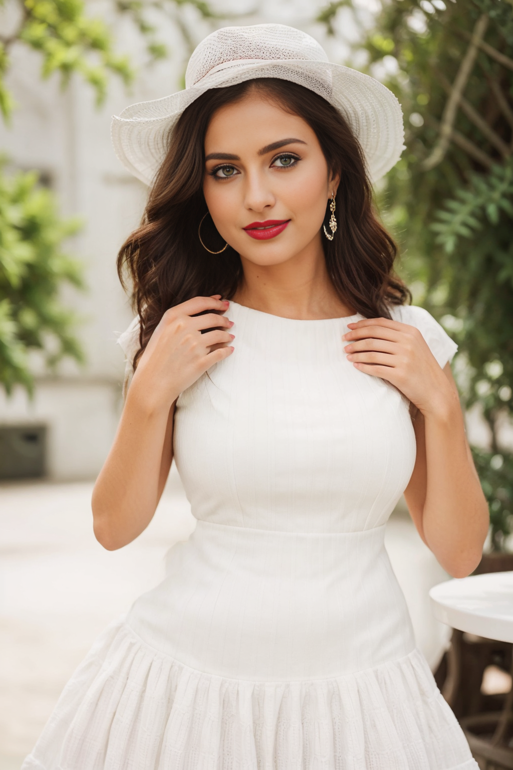 Prompt: “photograph taken with canon eos r3”, 50mm, 15mm, wearing a white sundress and a wide-brimmed hat, “a portrait of a man in a suit and tie, by David LaChapelle”