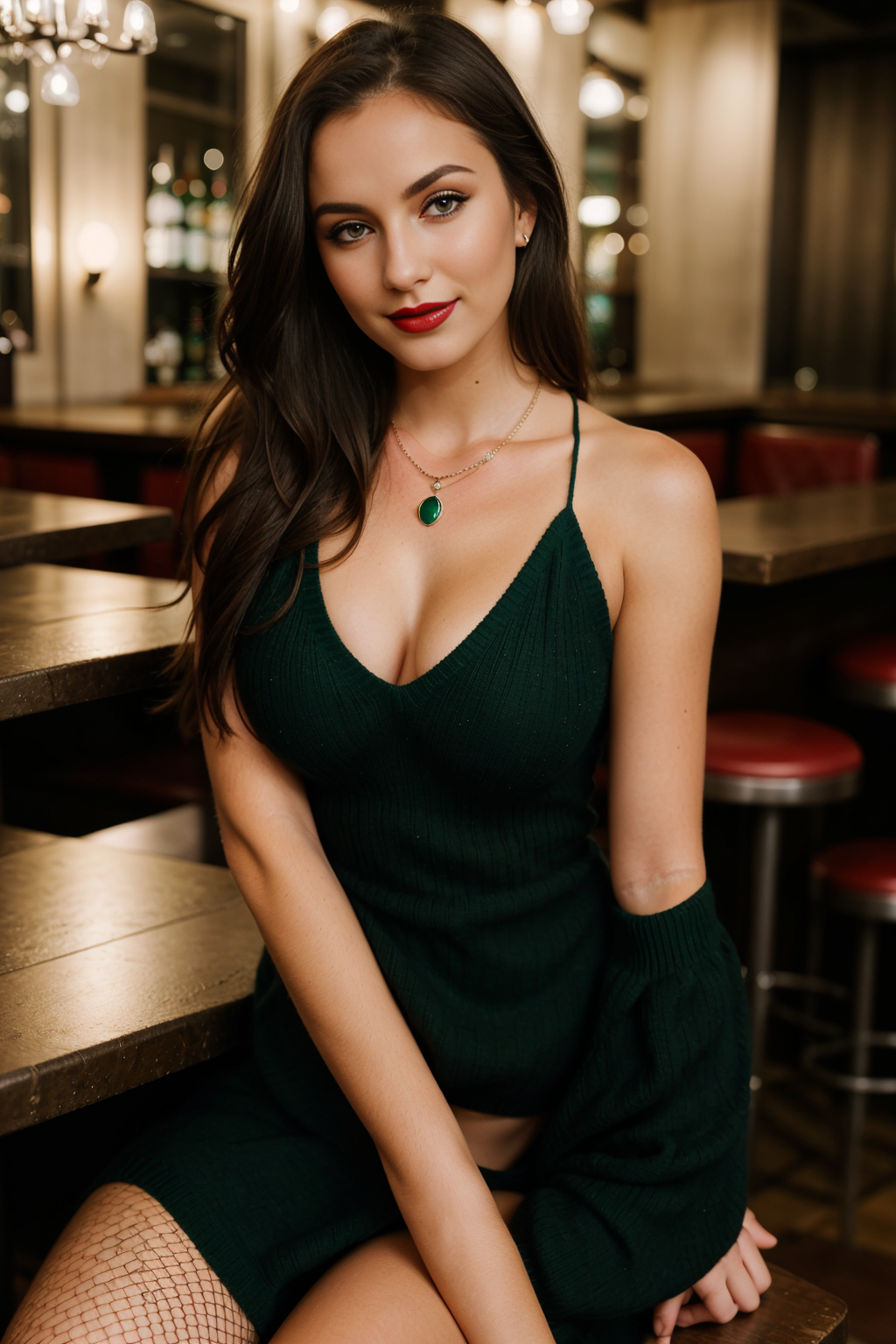 Prompt: “1/1250sec at f/2.8, 8k, 85mm, sitting on a stool in a dimly lit bar, ultradetailed, by David LaChapelle”