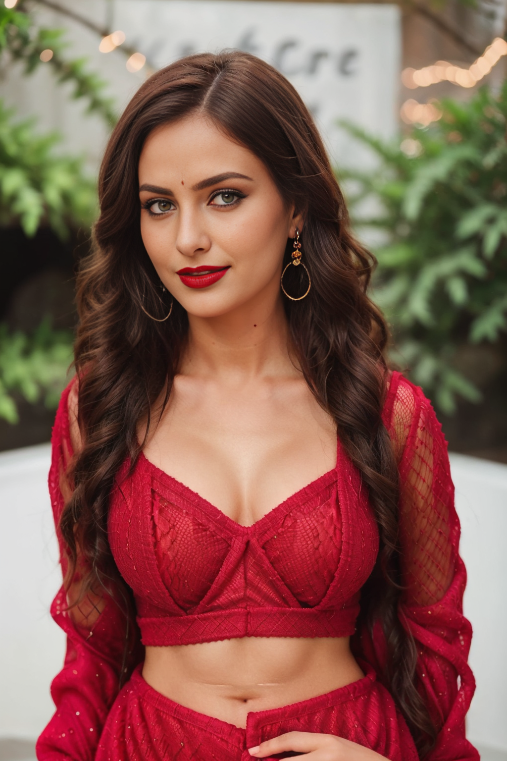 Prompt: “f1.8, 15mm, 35mm, “a portrait of a woman wearing a red dress, red night, by David LaChapelle”