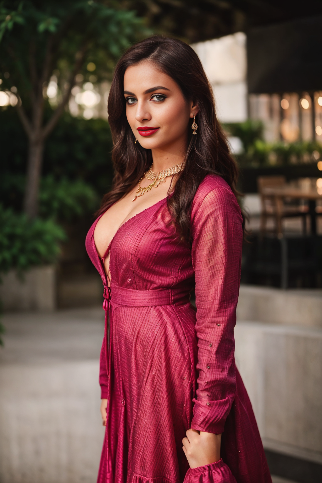 Prompt: “fujifilm x-t3, 84mm, F/2.8, “a portrait of a woman wearing a red dress, octane, by caravaggiom award winning photo”