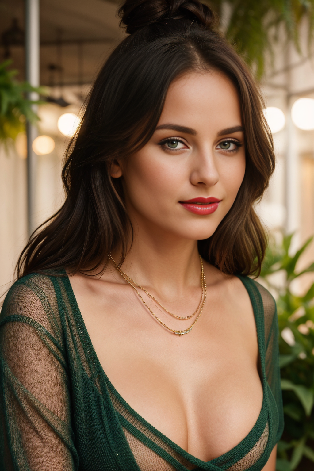 Prompt: “she is 18, 4k, 15mm, “girl soft lighting, the background should be out of focus and feature a lush garden setting”, by Filip Hodas”