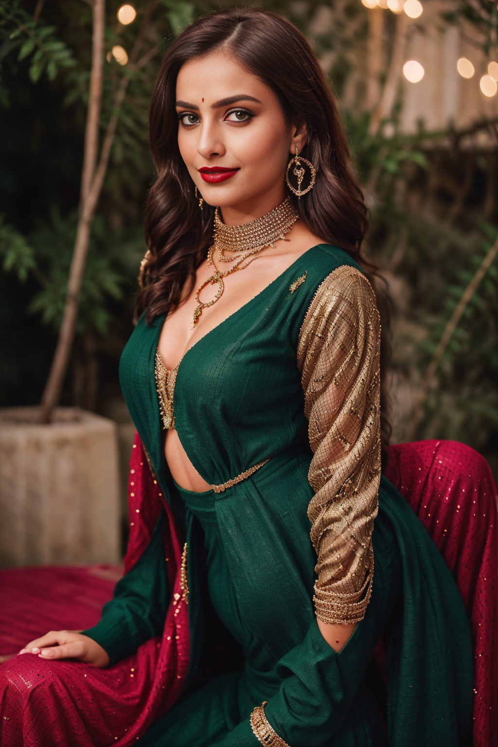 Prompt: “35 mm, 24mm, 15mm, “a close-up shot of a woman with a serene expression, exotic, by caravaggiom award winning photo”