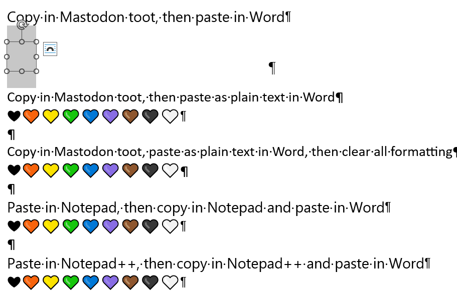 So, I copied the hearts from the published post on Mastodon.