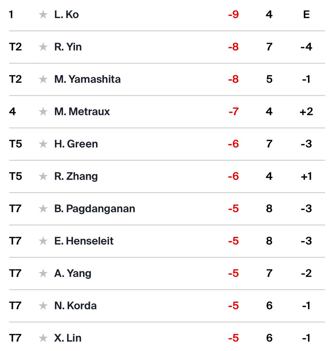 🚨📊👀 #GOLF UPDATE — A look at the leaderboard on the final day of the Women’s Golf Competition from Paris! Track with @NellyLegion & @RoseZhangLegion. https://t.co/qWu0UrQwER