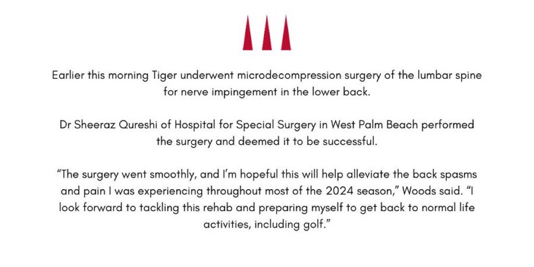 ๐ค #NEW โ Tiger Woods announces heโs had another surgery on his back. @JoshACarpenter reports that Tiger should still be able to play in the upcoming TGL league this January. @TWlegion @InjuryReportPGA https://t.co/rBzhAu1YhH
