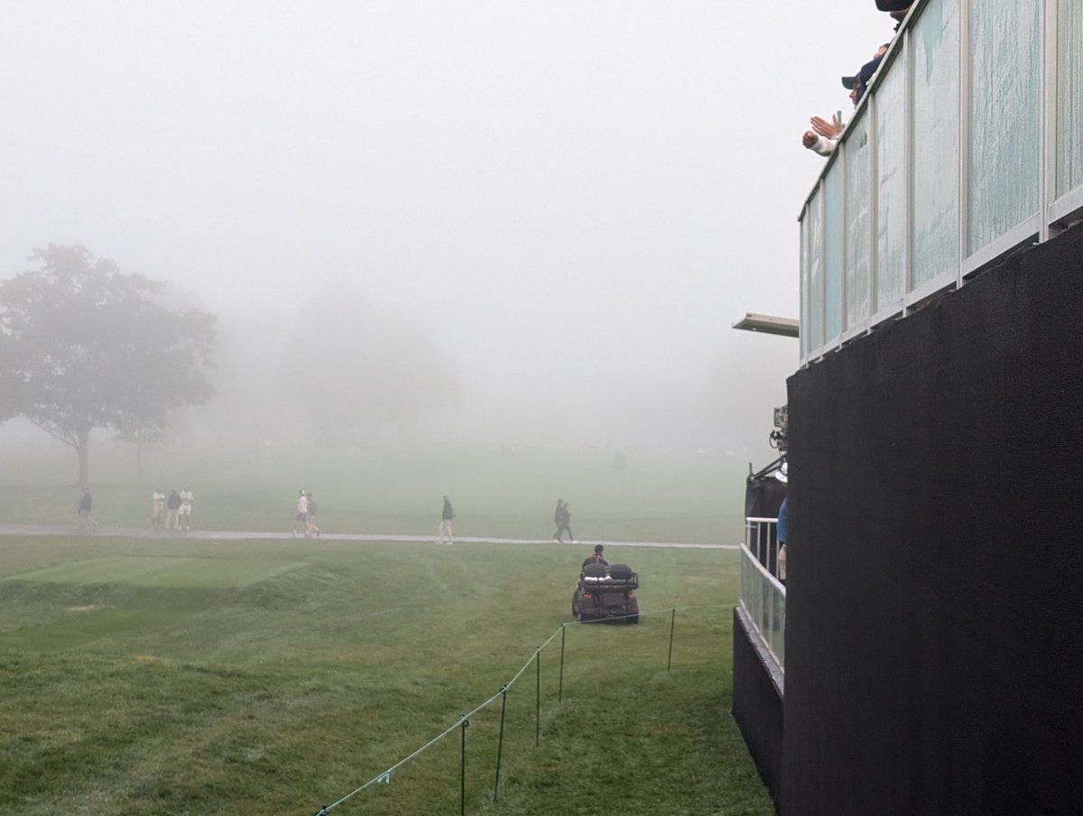 ๐จ#DELAY ๐ซ๏ธ โ Fog has temporarily suspended play early on Saturday in Montreal. #PresidentsCup (๐ธ: @BrodyAMiller) https://t.co/Ij00FQlD1r