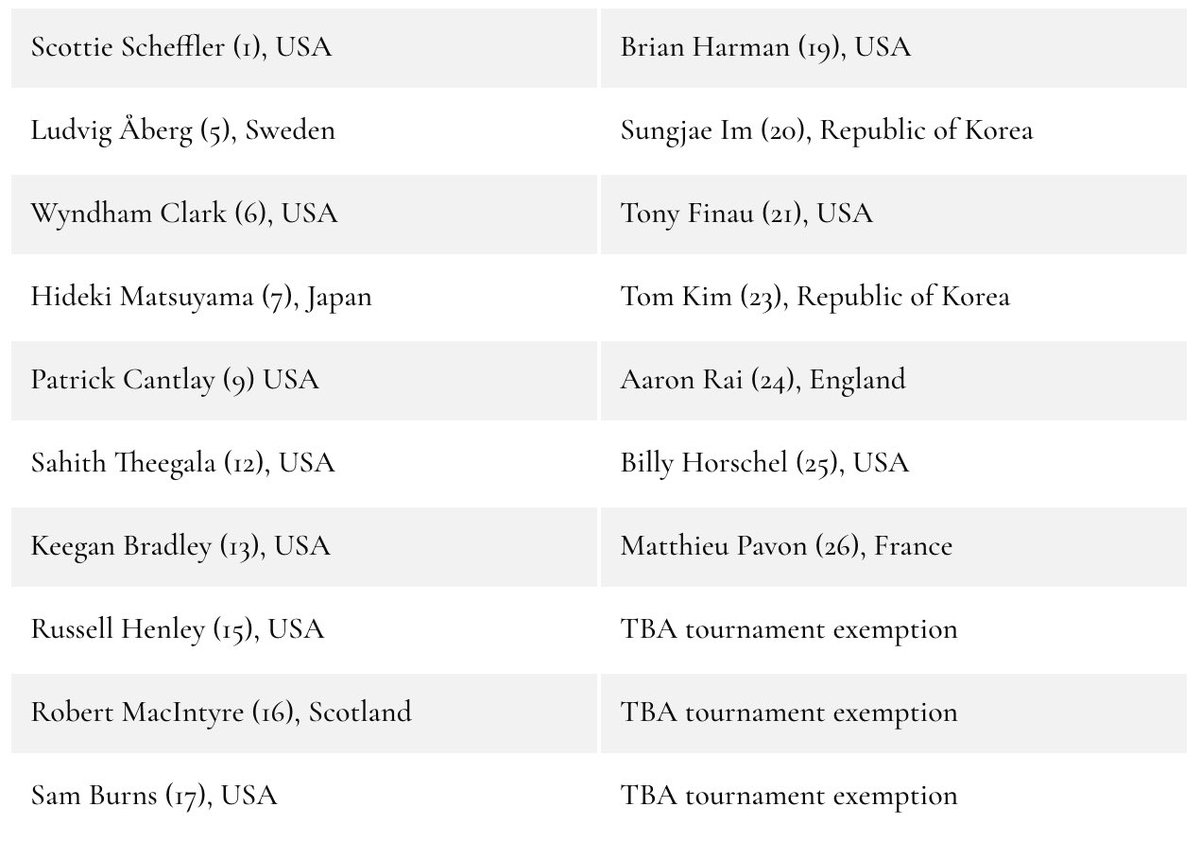 🚨🇧🇸⛳️ #NEW: The Hero World Challenge announces its 20 man field with spots reserved for 3 exemptions to be unveiled at a later date. https://t.co/v27mjAmBBU