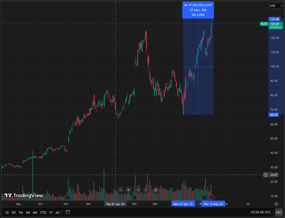 Could have, would have, should have doubled your money in 30 days on Palantir.