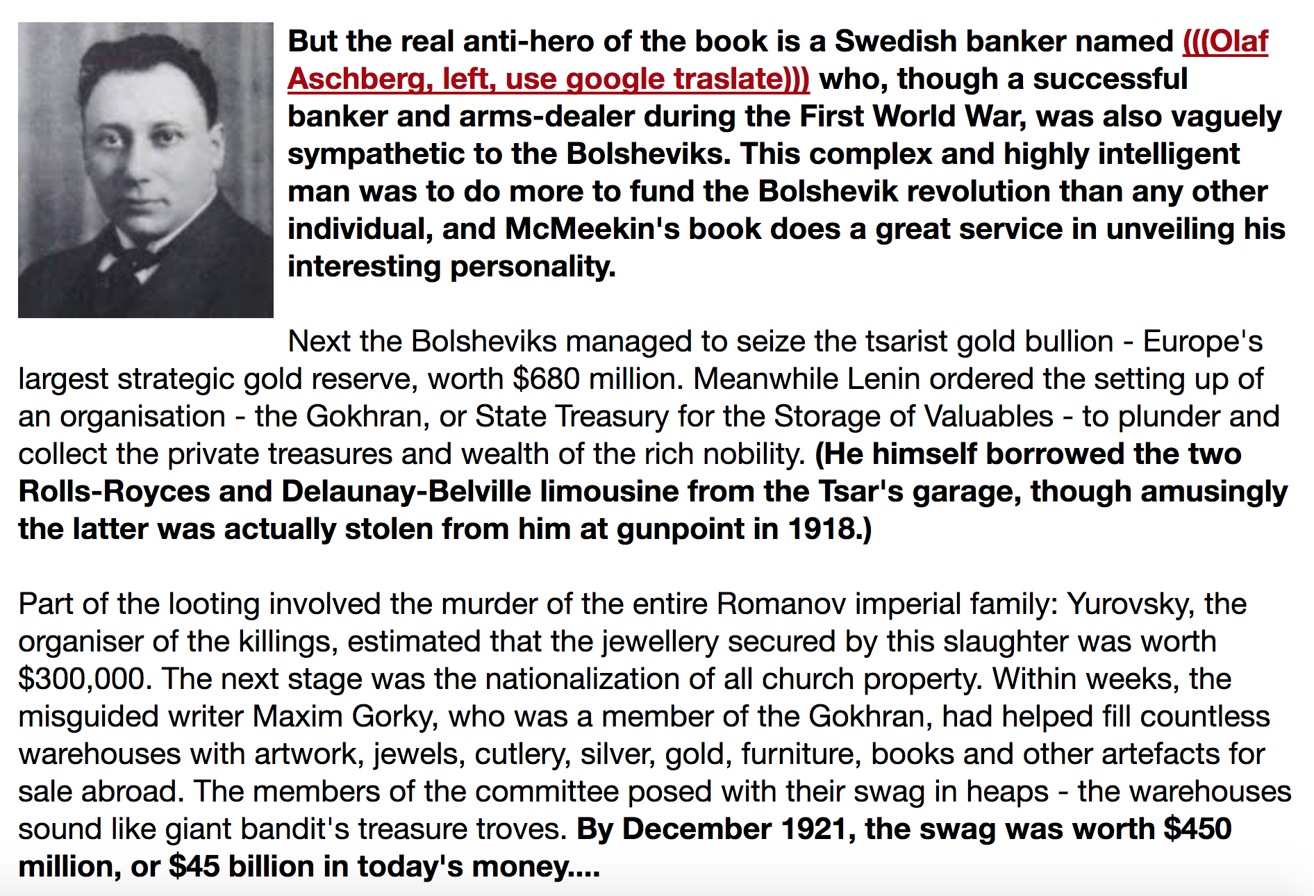Tags: jews, jewish_power, race, whites, anti_white, banking, bolshevism, donors, financing, money, olaf_aschberg, revolution, sweden, vladimir_lenin, white_genocide