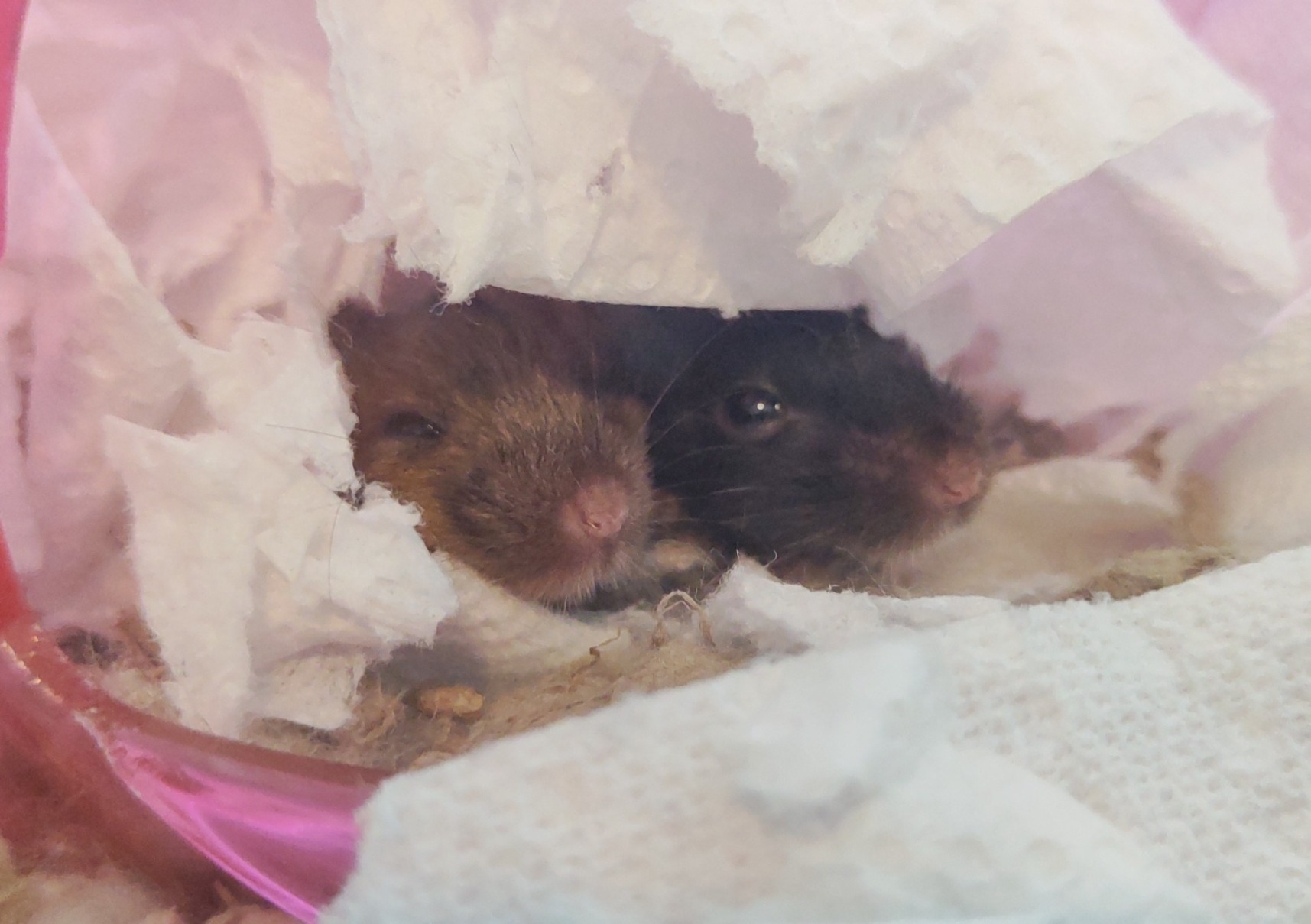 The mice are distraught bc I took out one of their wheels to clean it.