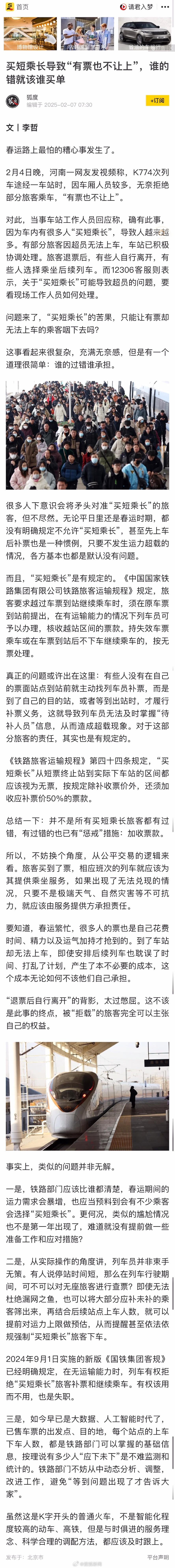 很多人下意识会将矛头对准“买短乘长”的旅客,但不尽然。无论平日里还是春运时期,都没有明确规定不允许“买短乘长”,甚至先上车后补票也是一种惯例,只要不发生运力超载的情况,各方基本也都是默认没有问题。