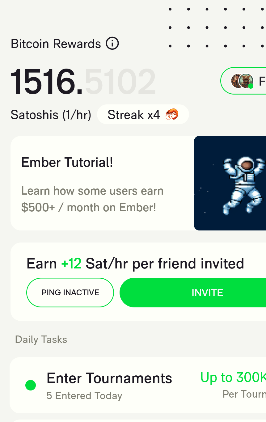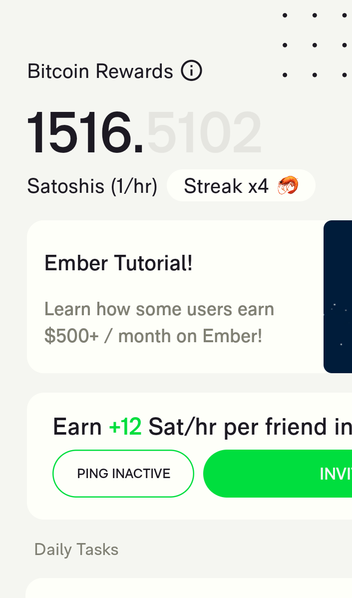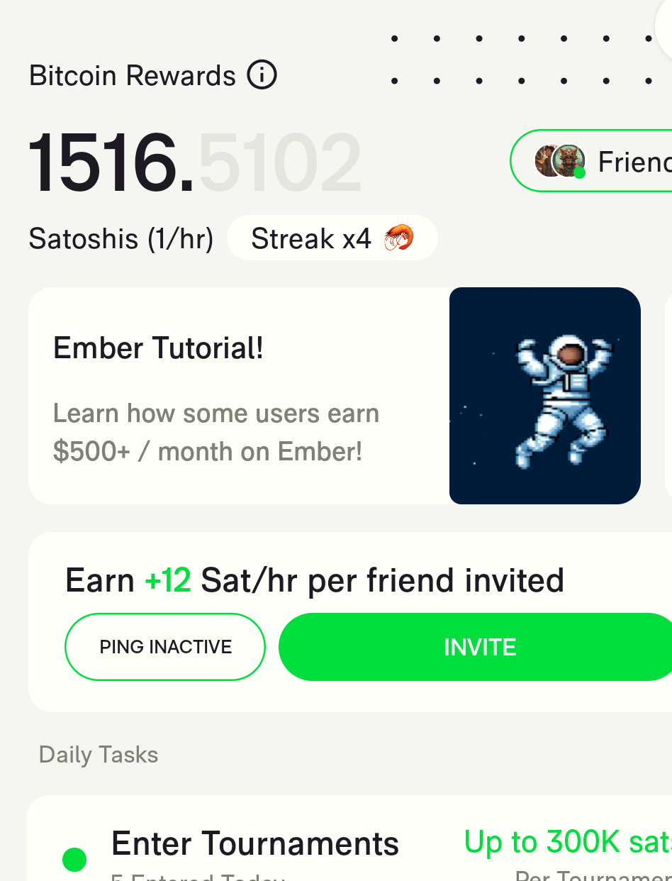 Join Ember with my referral link and we'll both earn Bitcoin daily! Anyone who joins and messages to let me know I'll be giving away 100 SATs please join with my referral!