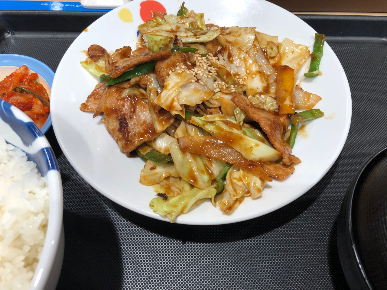 今夜も松屋の回鍋肉定食キムチセットご飯特盛です😋