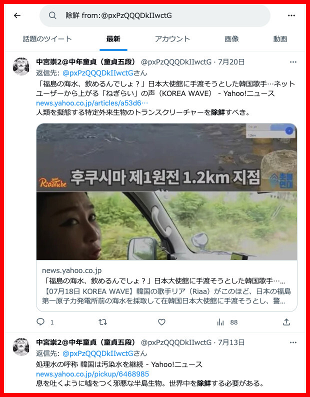 実はTwitter改めXの最近の通報はログイン作業が面倒なのでメインアカウント(現在凍結中)でやっていたのですよ。今は隠し持っていた通報専用非公開アカウントから通報していますが、こちらはネトウヨから一切ブロックされていないので、ヘイトなキーワードで検索するとメインアカウントの時よりも大量に違反ツイートが引っ掛かります😆
