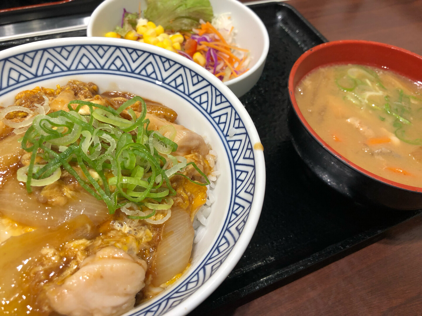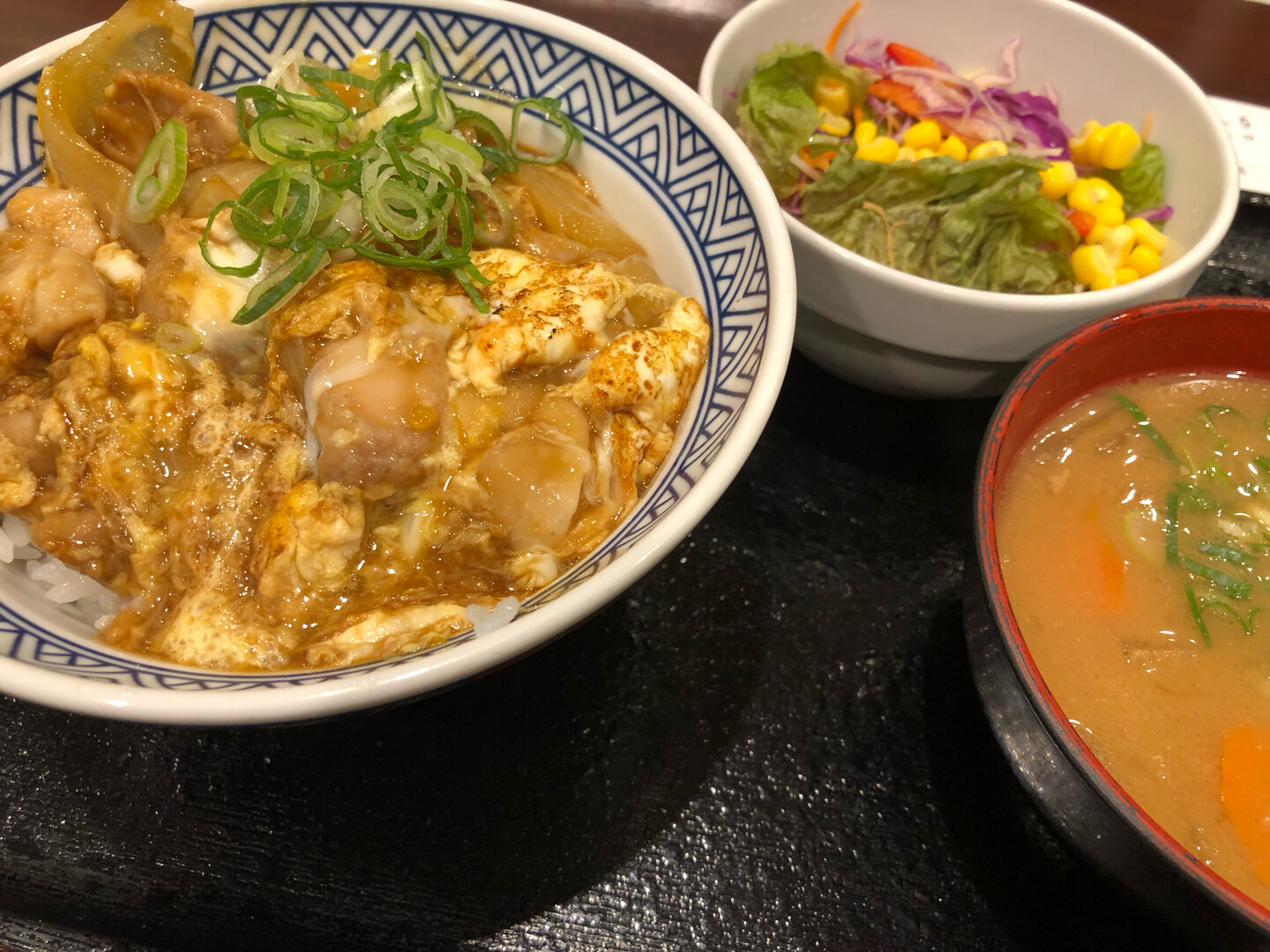 おはよーございます。昨夜は吉野家で親子丼とサラダセットの豚汁変更でした😋