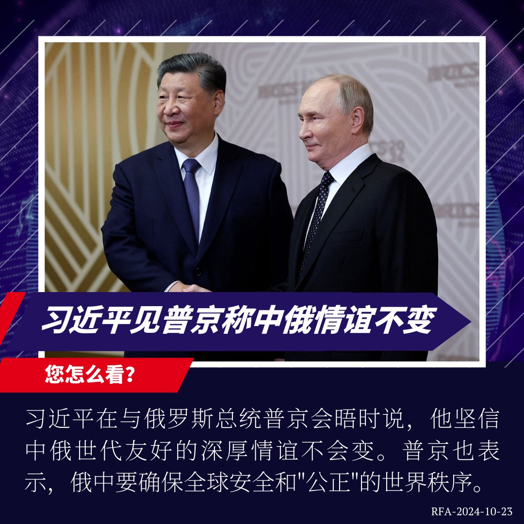 习近平表示此行受普京邀请,他以“亲爱的老朋友”称呼普京。普京也称呼习“亲爱的朋友”。根据央视释出两人会谈的视频,习近平以“茶”作起头阐述中俄关系,提到约400年前,联通中俄两国的“万里茶道”正是从喀山经过,将中国武夷山的茶叶送到俄罗斯家户。https://t.co/IaIZ3BQBNs https://t.co/sqxP0o63Ke