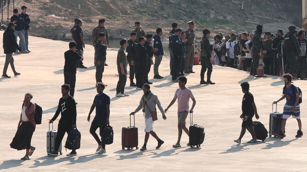De nu uit Myanmar vertrokken buitenlanders, onder wie tien Chinezen, werden in de buurt van Mae Sot aan het Thaise leger overgedragen door de DKBA. Dat is een van de milities in het land die gebied in de Karen-staat aan de grens met Thailand controleert. Deze gewapende groepen zijn eerder beschuldigd van het toestaan en in stand houden van de oplichtingspraktijken.