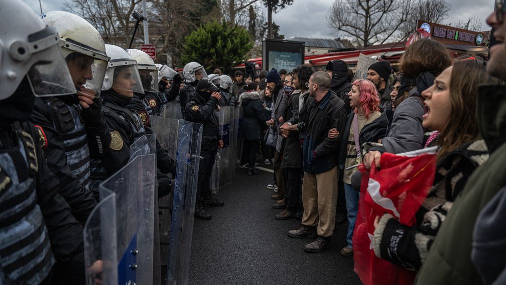 In Turkse steden zijn grote protesten uitgebroken sinds de aanhouding afgelopen woensdag van Imamoglu. De oppositiepoliticus wordt gezien als de belangrijkste rivaal van president Erdogan, die al ruim twintig jaar aan de macht is. Imamoglu's centrumlinkse partij CHP wees hem afgelopen weekend aan als kandidaat voor de presidentsverkiezingen van 2028.