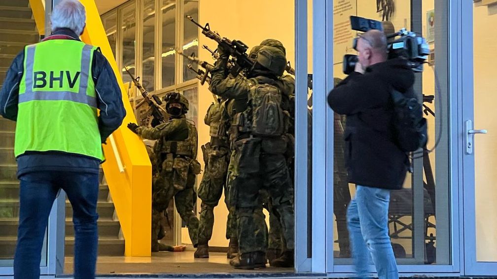 De 'bevrijdingsactie' op op het Comenius College lukte, maar ging wel gepaard met veel geknal en geweervuur. "Normaal trainen we veel in een afgeschermde omgeving, op oefenterreinen natuurlijk", aldus eerste luitenant Yannick bij de regionale omroep Rijnmond. "Nu proberen we dat een beetje te mixen met objecten in een complexere omgeving waar ook burgers bij betrokken zijn."