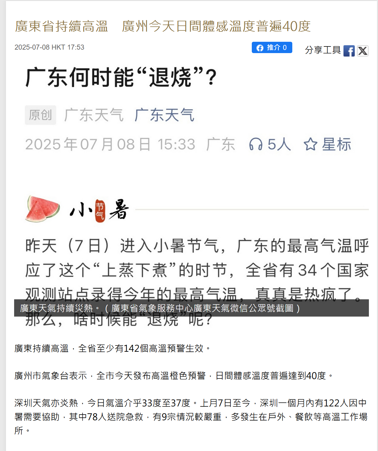 “广东何时能退烧”——当然是11月呀。珠三角每年从4月到11月都是中暑的天气。