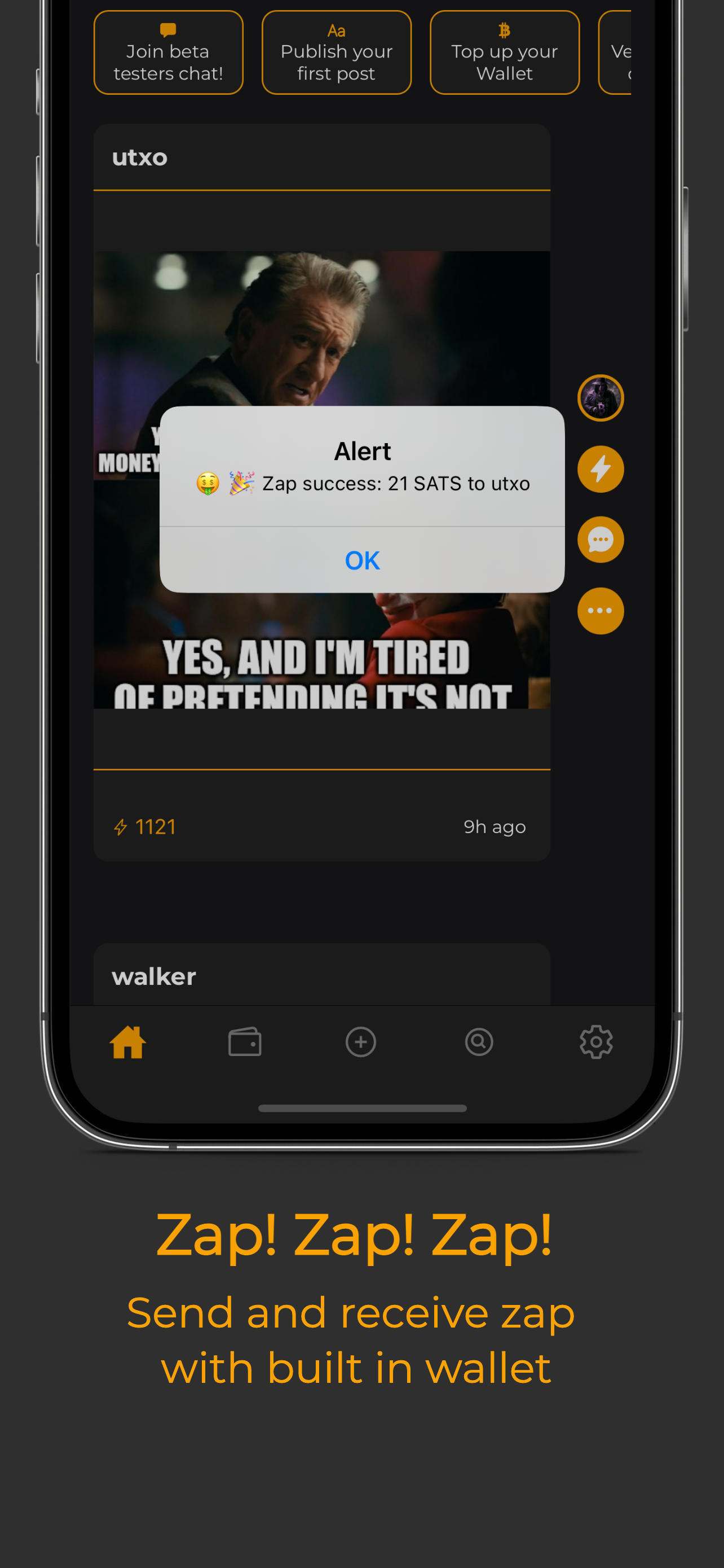 You can also now see zaps , and choose the custom amount.