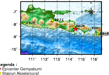 Pusat gempa berada dilaut 12 km BaratDaya Jembrana