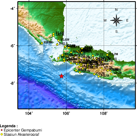 Pusat gempa berada di laut 85 km BaratDaya Bayah
