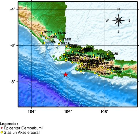 Pusat gempa berada di laut 75 km BaratDaya Bayah