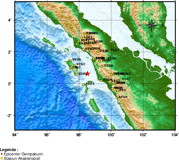 Pusat gempa berada di laut 78 km TimurLaut Nias Selatan
