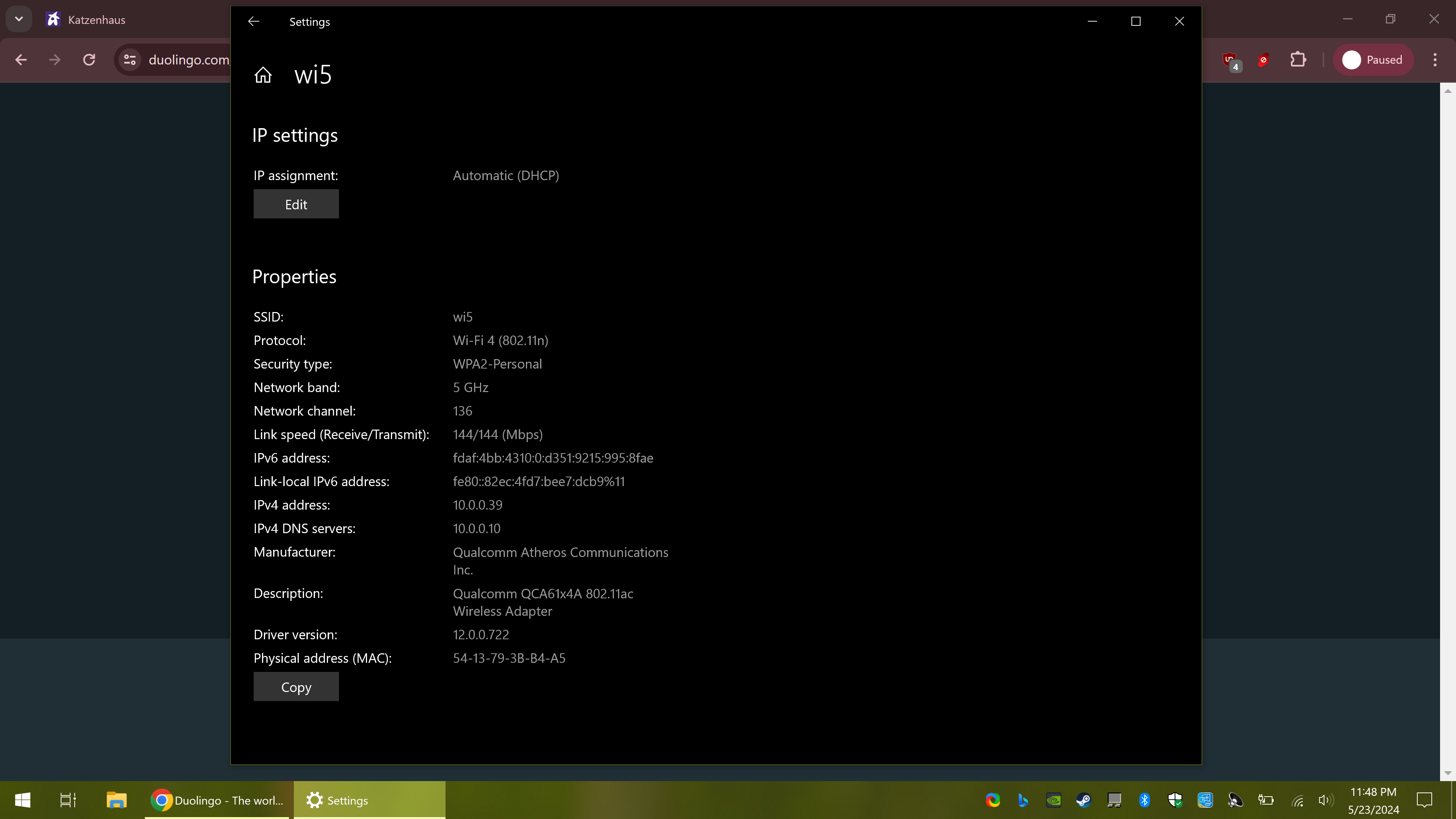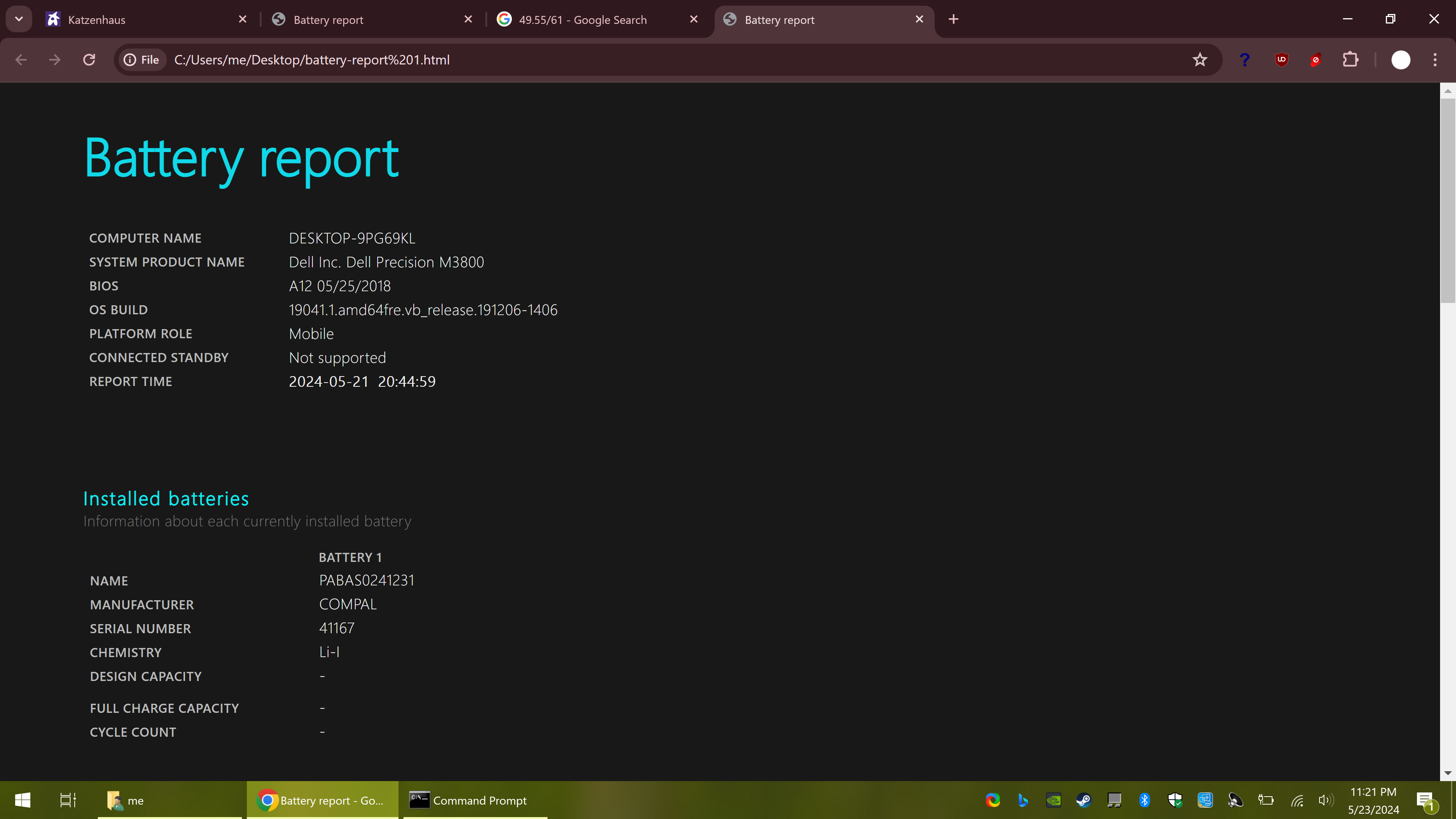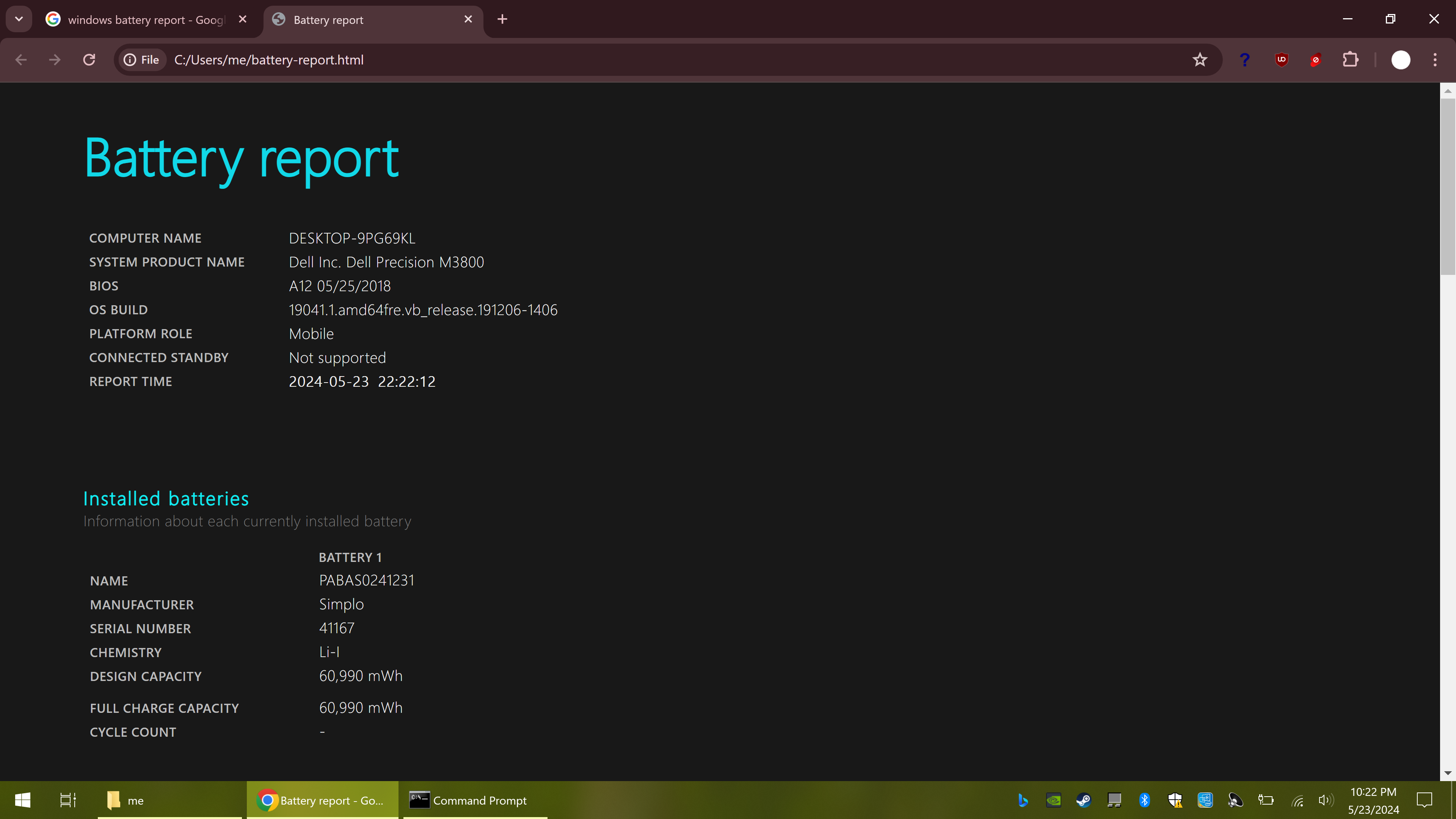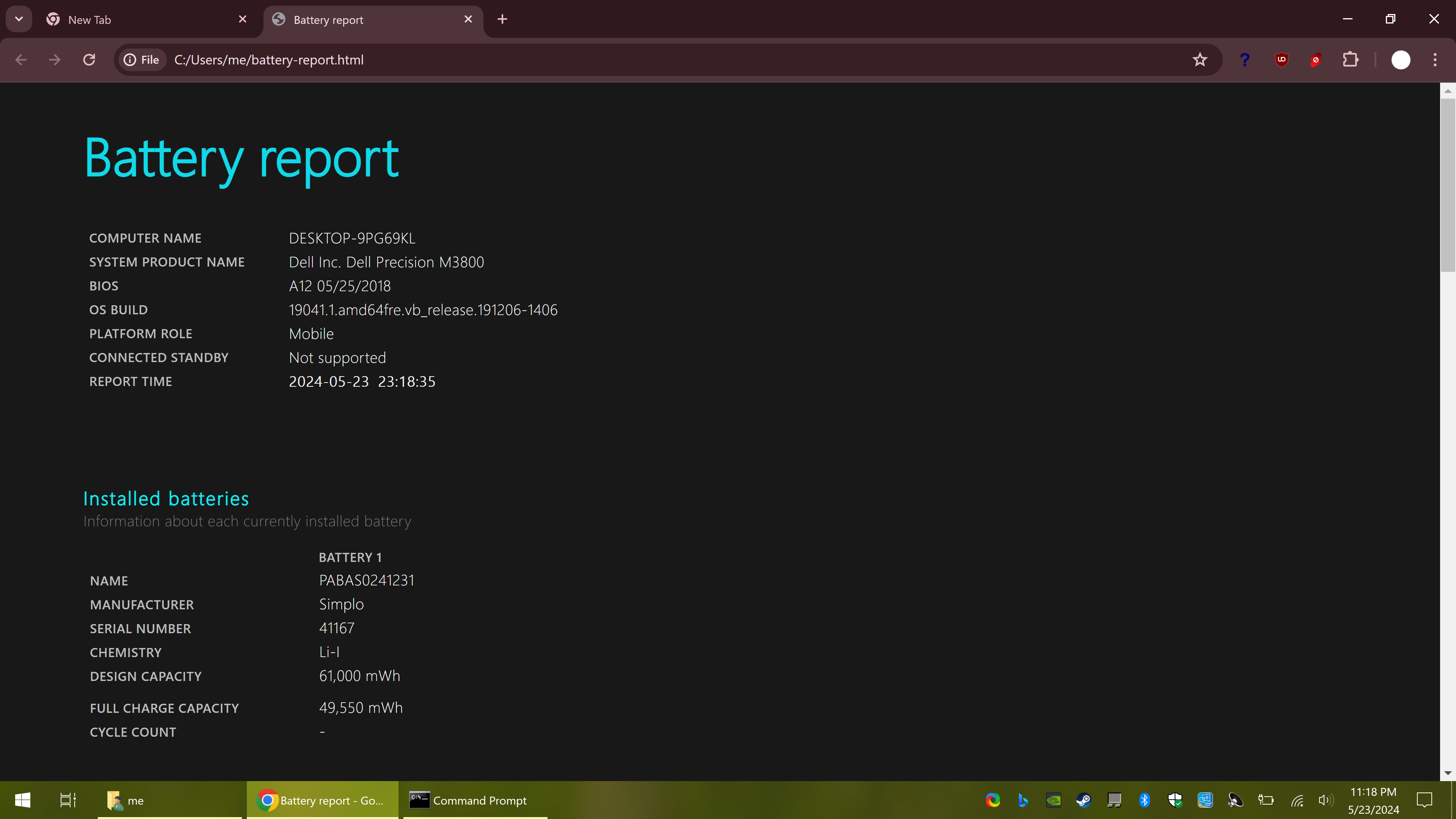 Now reporting the capacity, 49.55wh from 61 design, so it's at 81% health.