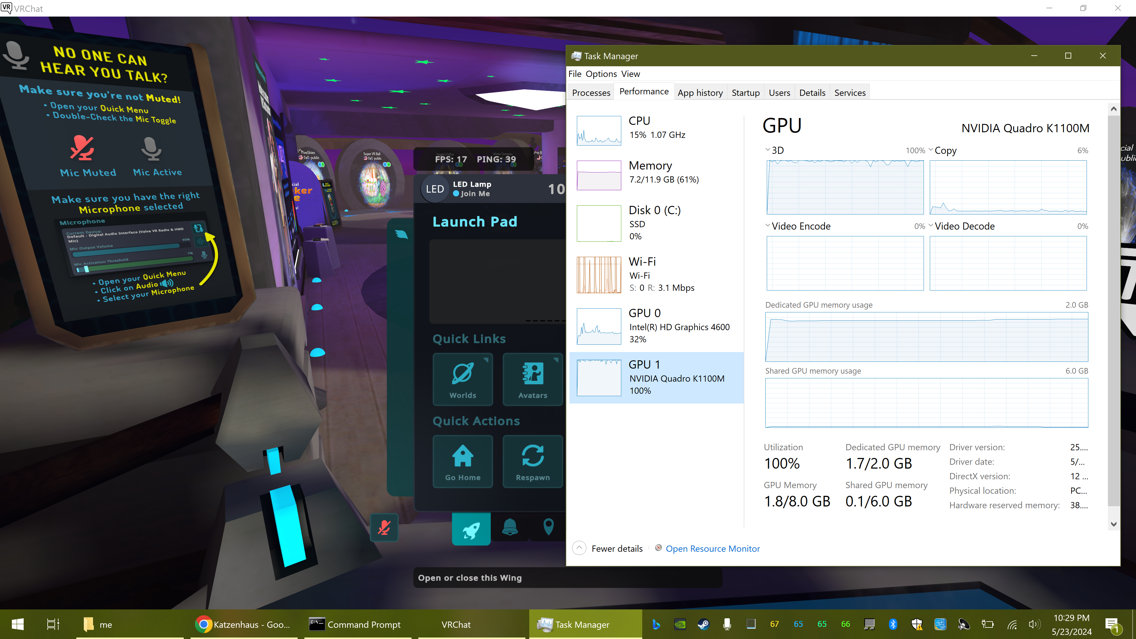 I can run vrchat now without it dying... 19 fps in lobby, on a 4k screen... well 17 after some moron walked in