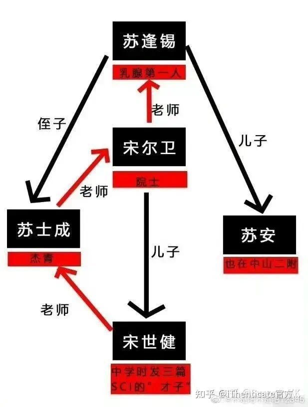 研究通讯作者为苏士成教授,论文共同第一作者之一Shijian Song(宋世建) ,是苏士成教授的导师宋尔卫院士之子,宋尔卫是中科院院士,中国医学科学院学部委员,现任中山大学医学部主任,中山二院院长