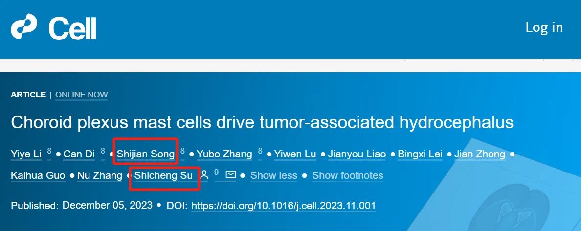 2023年12月5日,中山大学苏士成团队在Cell 在线发表题为“Choroid plexus mast cells drive tumor-associated hydrocephalus”的研究论文,该研究通过单核RNA测序和空间转录组学,发现脉络膜丛中有一个独特的肥大细胞群,并且在TAH期间显著增加