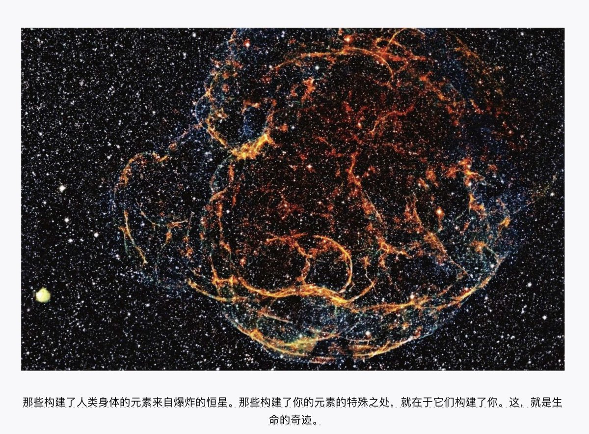 毫无疑问,最叫我们震惊的事情是:我们只是一堆惰性化学成分,就跟你在一堆泥土里找到的东西一样。我之前在另一本书中说过,这里不妨再说一遍:构成你的元素唯一特殊的地方,就在于它们构成了你