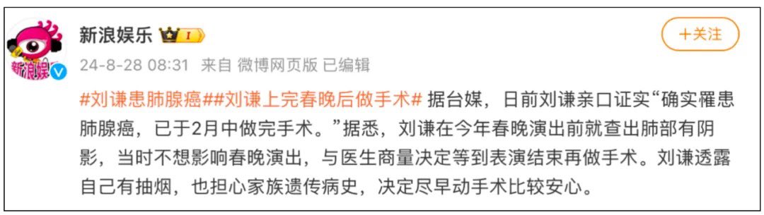 CCTV春晚御用魔术师刘谦被诊断为“零期肺腺癌”,手术切除后恢复良好