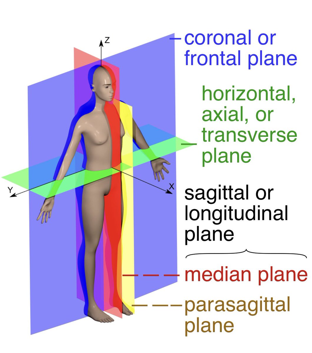 即从左右方向,沿人体的长轴将人体纵切为前、后两部分的切面