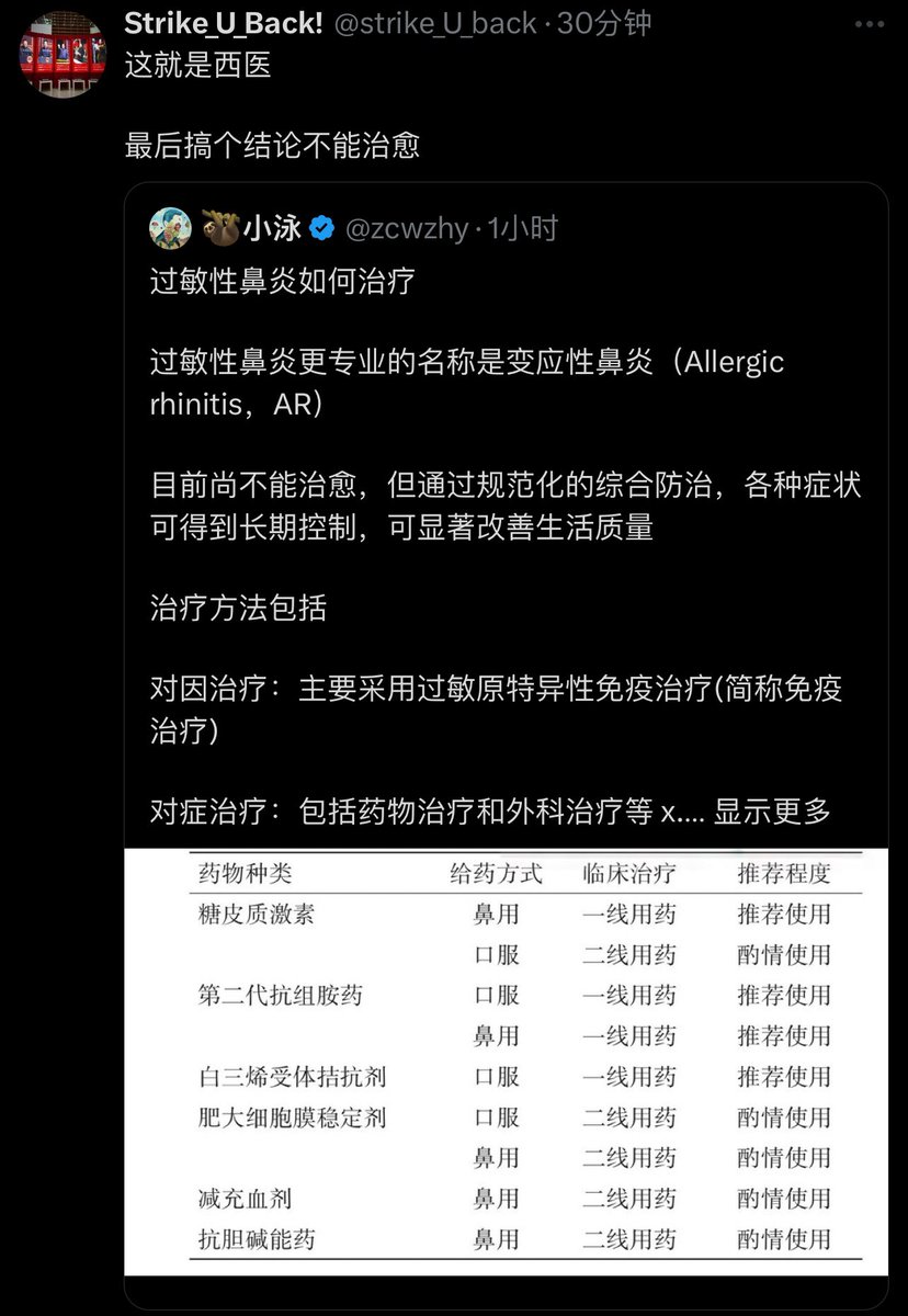 国内推荐第二代抗组胺药为 AR 的一 线治疗药物,我个人尽量使用第三代
