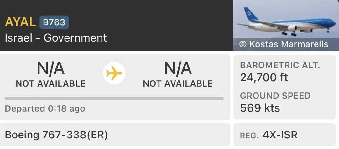 突发:以色列政府的“末日飞机”已经起飞,是唯一离开以色列的飞机。有可能搭乘的是内塔尼亚胡和内阁。情况愈来愈糟糕了!拜登刚在特拉华州,而整个世界即将陷入第三次世界大战。精英受到保护,而人民却受苦。BREAKING:The Israeli Governments "Doomsday plane" has taken off and is the only plane leaving Israel. Potentially carrying Netanyahu and cabinet. This is very bad. Biden was in Delaware while the entire world is about to get into ww3. Elites are protected while their people suffer.