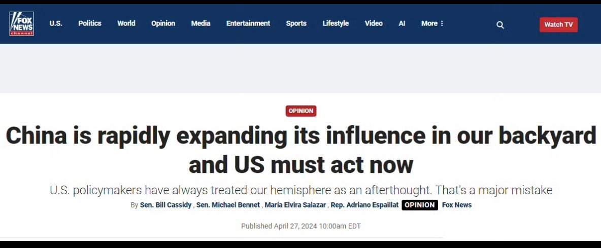 美国两名参议员一名众议员联合撰文称,中国正在迅速扩大其在美国后院的影响力,美国必须立即采取行动。美国政策制定者,总是把美国的西半球当作马后炮,这是一个重大错误。接下来,亚洲、西半球、南美、拉丁美洲和加勒比海,都当作美国后院?布林肯在中国遭遇BBC女记者的连怼:美国一方面要求中国停止向俄罗斯出口零部件,另一方面却向以色列提供武器,这种自相矛盾的做法,充分暴露了其霸权主义的本质?