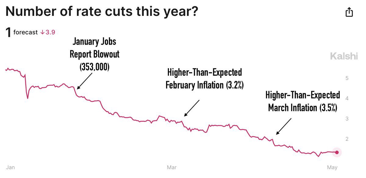 美国华人,系好资金安全带?今年1月份,经济学家预测2024年降息次数将达到6次。在今天的美联储FOMC会议之后,我们很幸运能得到一次。但对于那些关注2024年降息市场的人来说,这并不奇怪,今年的利率期货非常不准确。事实上,预测市场显示2024年零降息的可能性为40%。尽管鲍威尔表示认为,加息可能性不大,但预测市场仍认为,2024年加息的可能性为11%。
