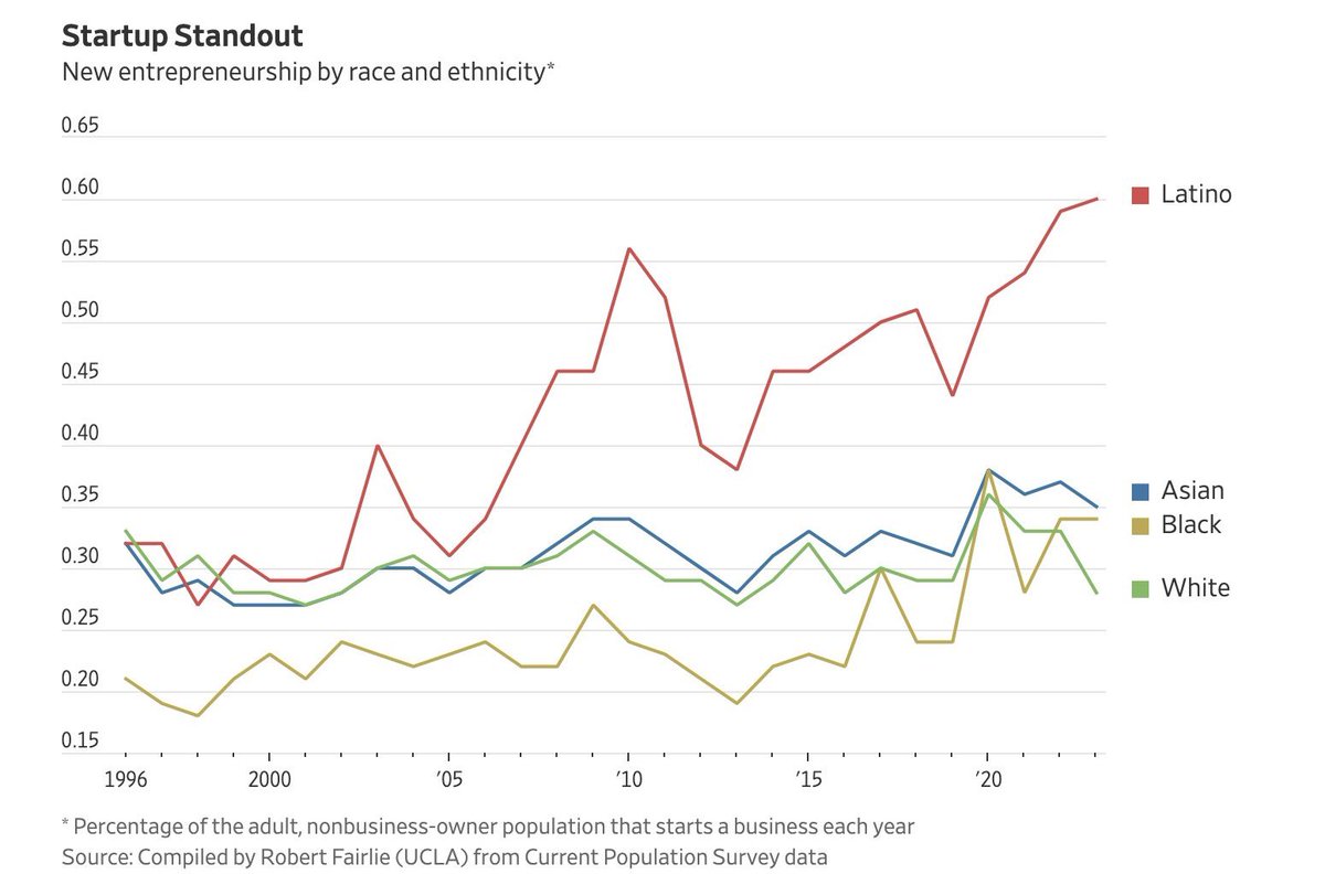 美国的白人都躺平了吗?拉丁美洲移民创业的速度,是美国总人口的两倍。获取资金对移民和土生土长的拉丁裔来说都是一个挑战。亚裔和黑人的创业热情,为何都不白人强?Latin American immigrants are starting businesses at twice the rate of the US population as a whole. Access to capital is a challenge for immigrant and native-born Latine.