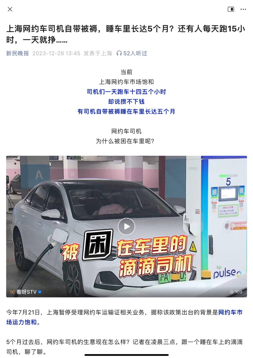 上海网约车司机自带被褥,睡车里长达5个月?还有人每天跑15小时,也攒不了多少钱。 https://t.co/PotU23KCYv